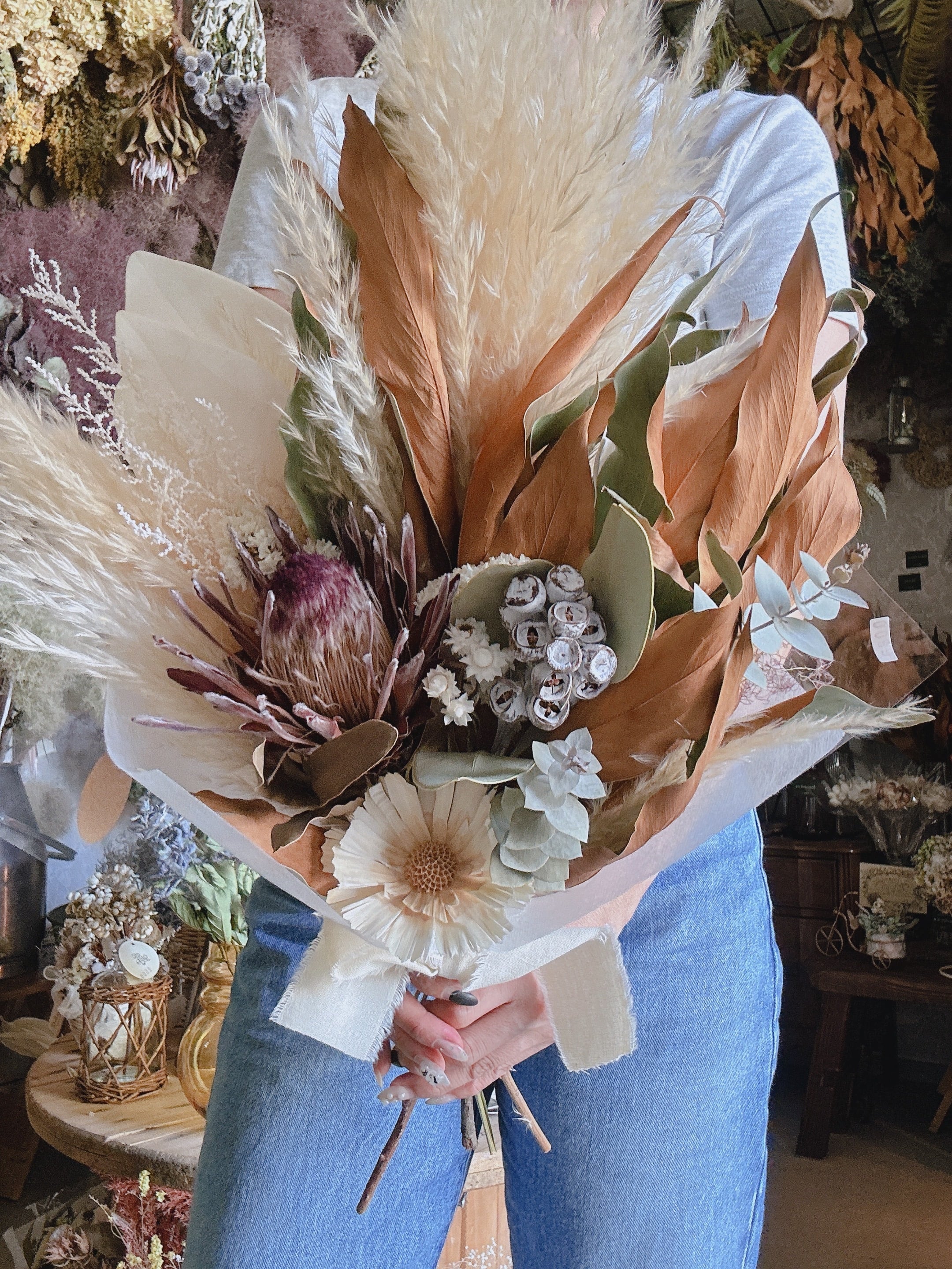 パンパスグラスとプロテアの存在感スワッグ