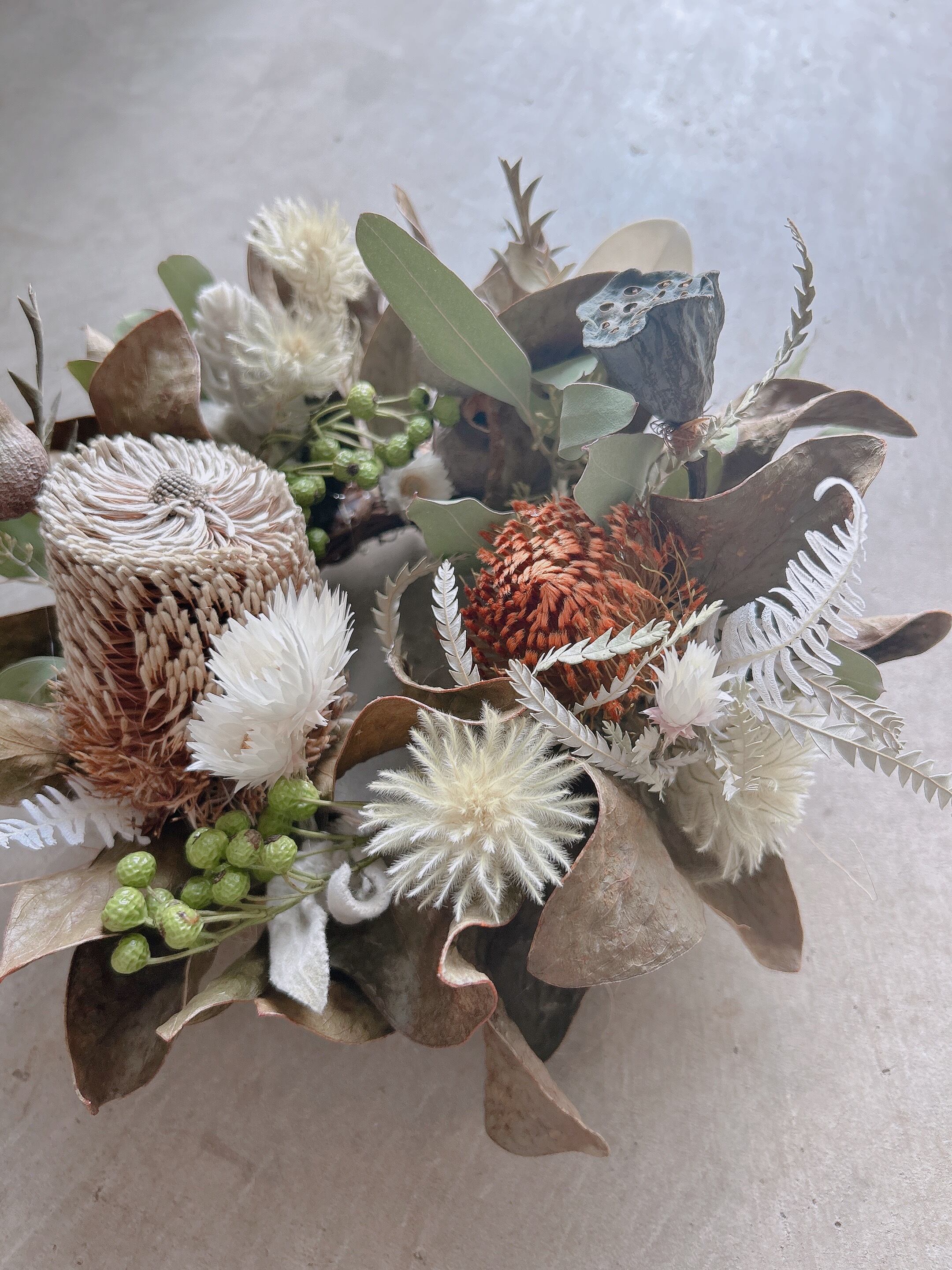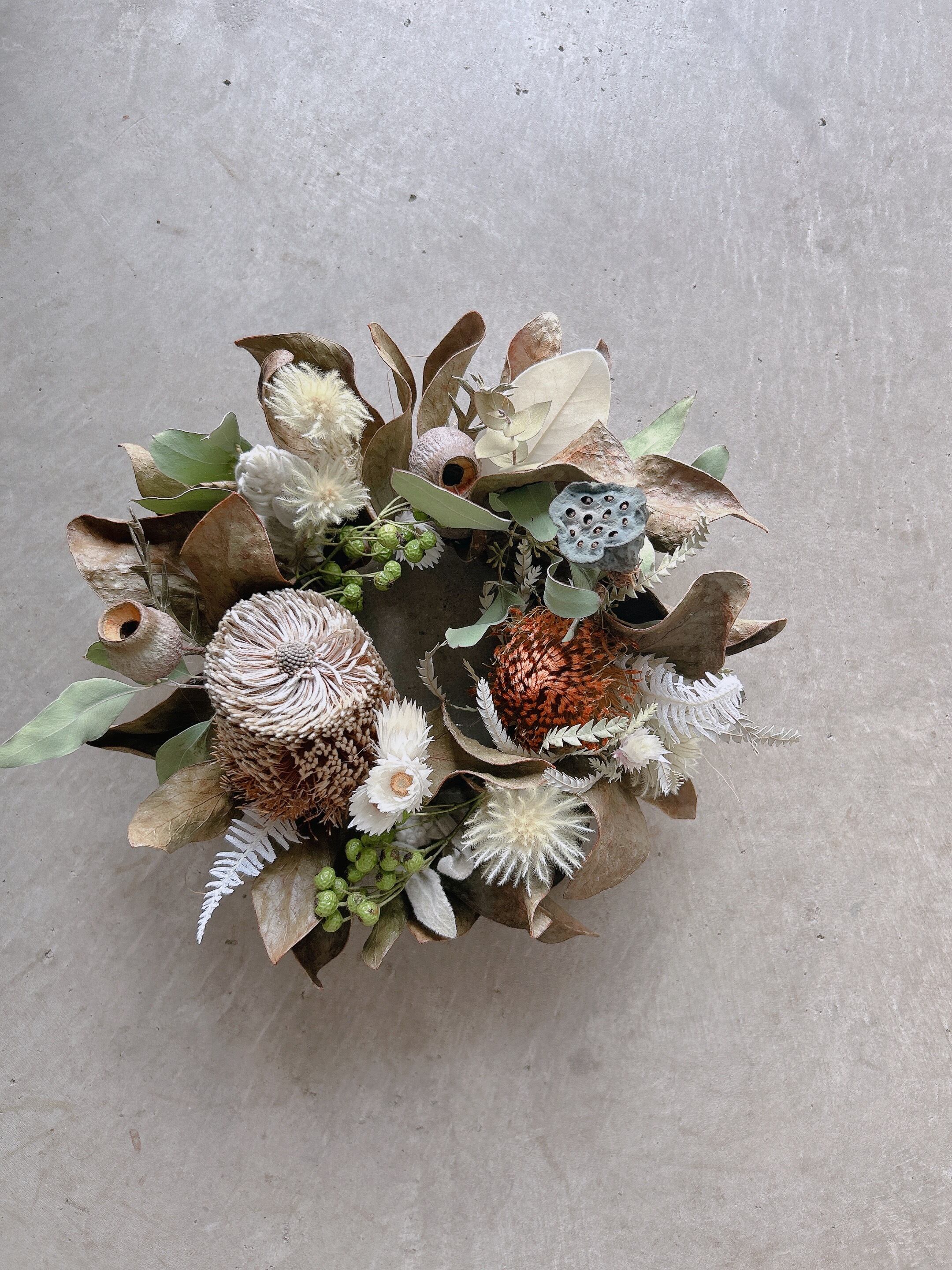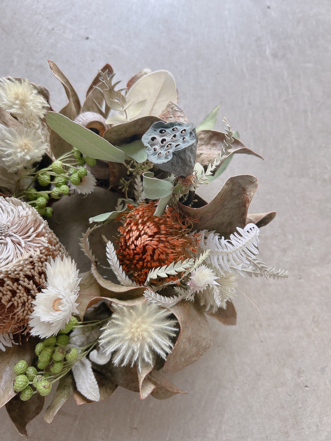 野薔薇の実など、個性豊かな植物を組み合わせ