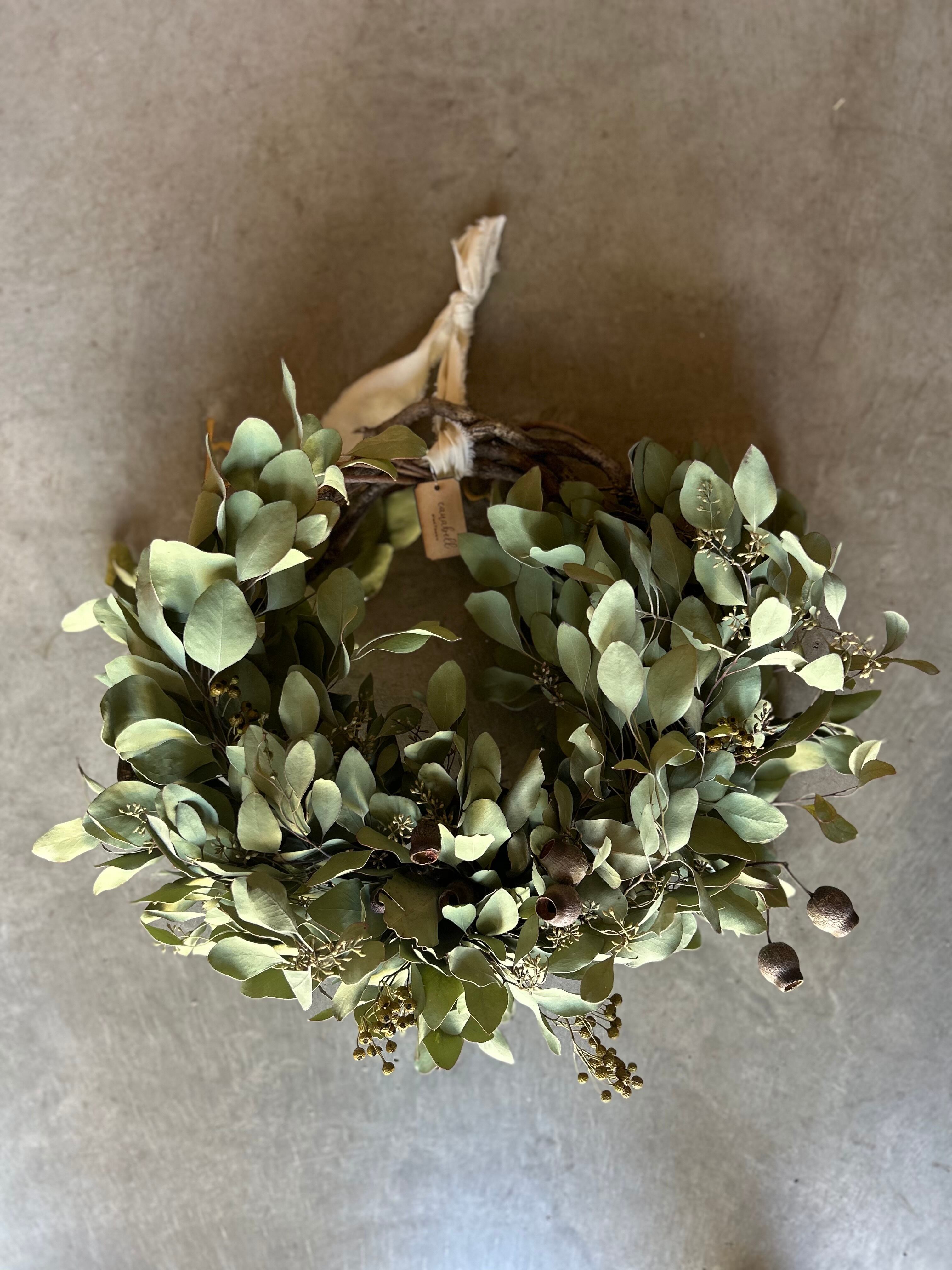 ポポラスとベルガムナッツのドライフラワーリース