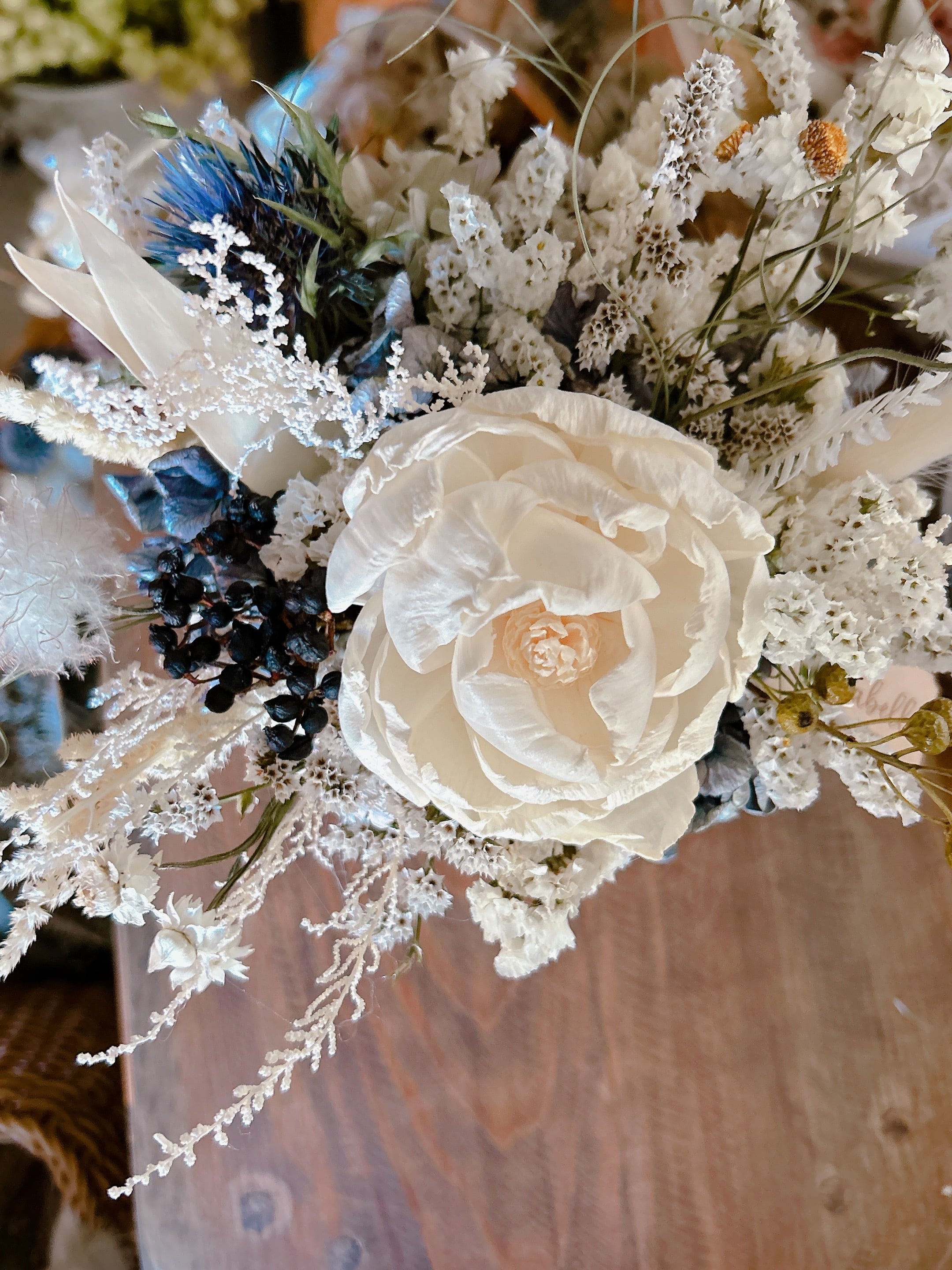 組み合わせた、ナチュラルで優しい雰囲気の置き型アレンジメント。