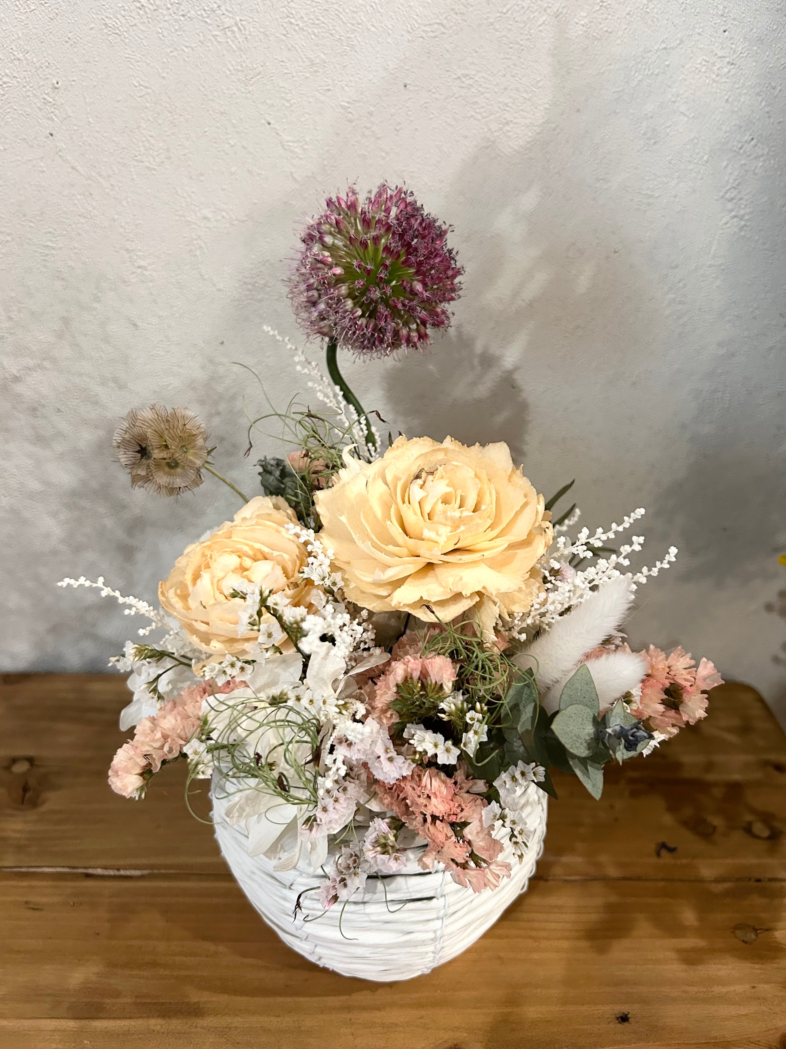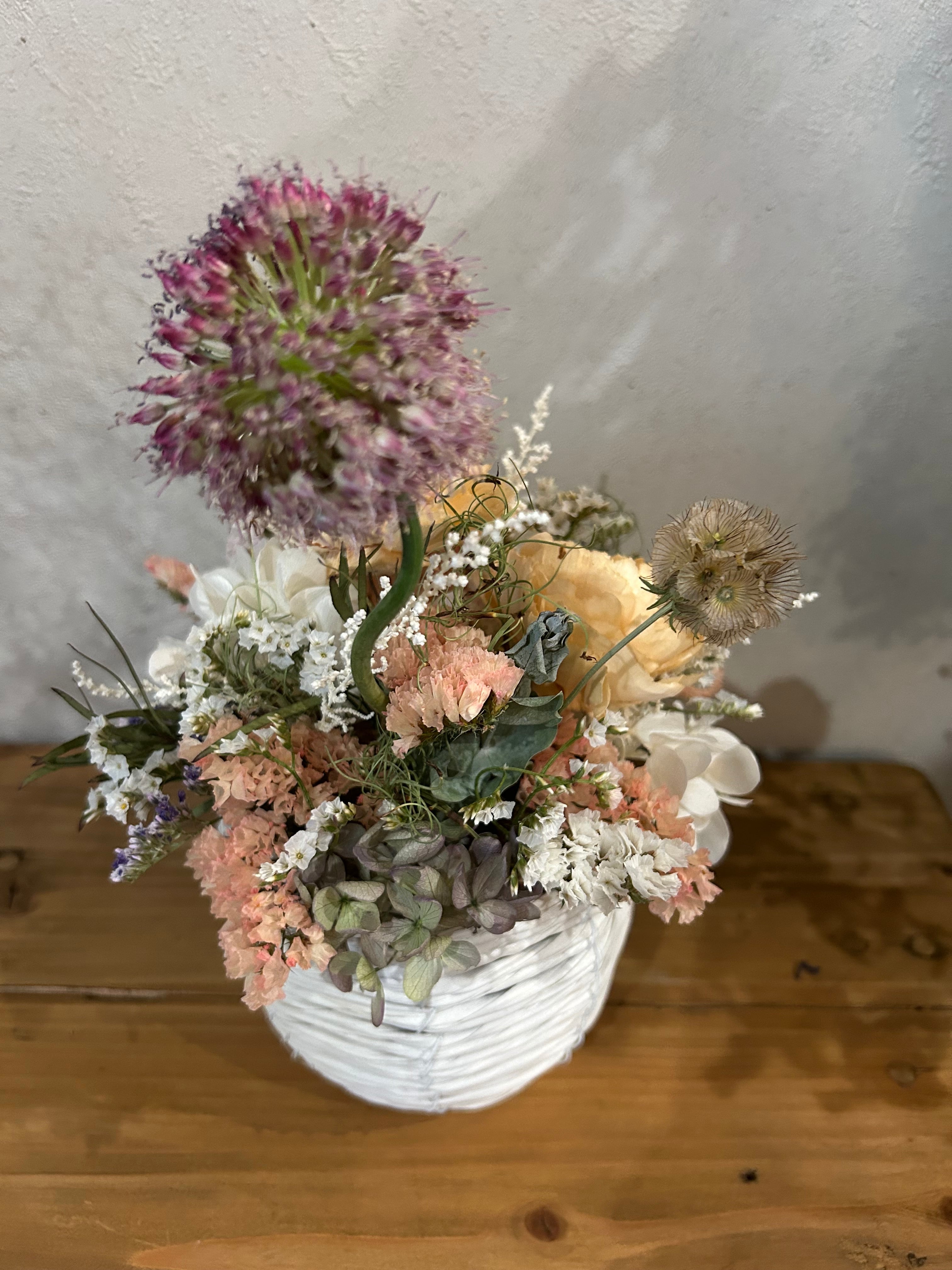 母の日バスケットアレンジ ドライフラワーソラフラワー